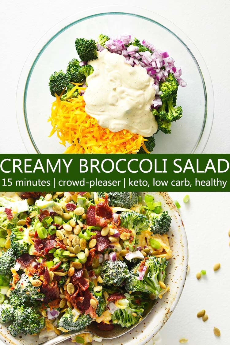 This Easy Keto Broccoli Salad Recipe is a delicious blend of savory flavors and crunchy textures in a creamy dressing. It whips up fast and makes a perfect side dish or lunch!