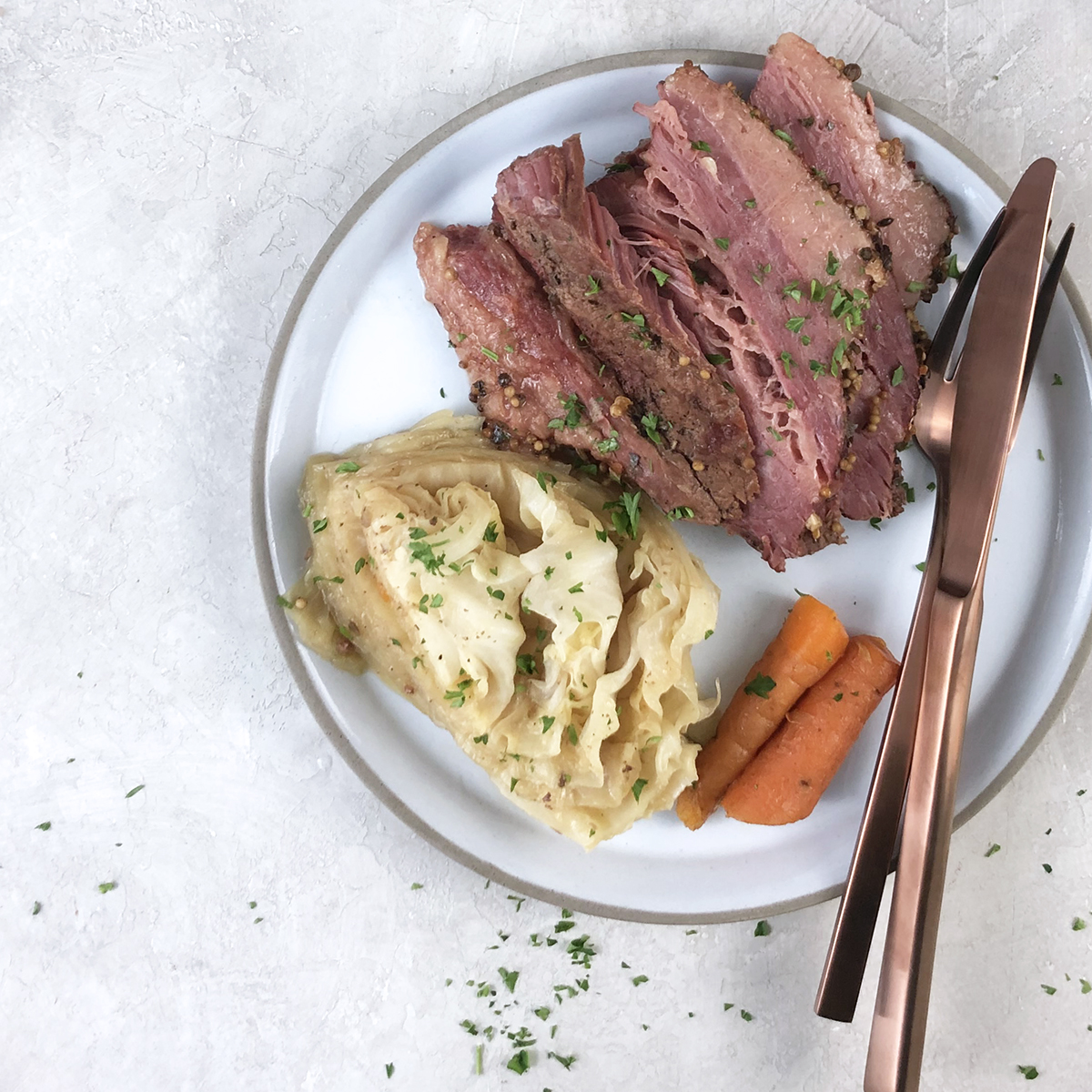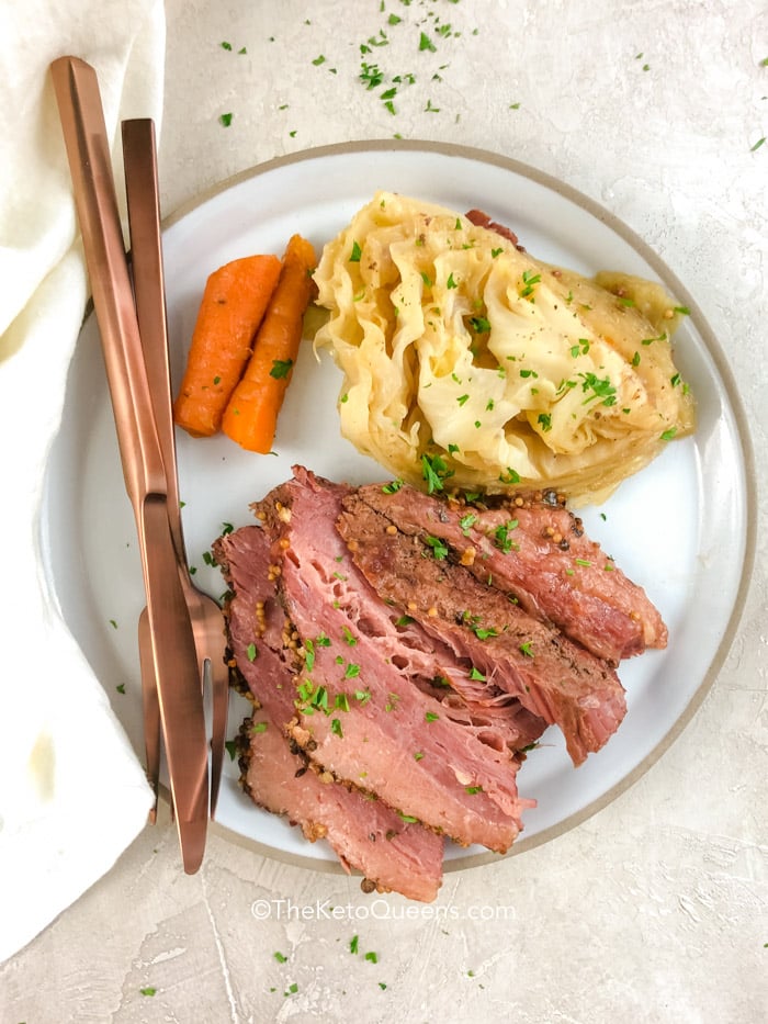 Yes, corned beef is brined beef brisket and most of the carbs in a corned beef recipe come from the potatoes. In this recipe we skip the spuds and double up on the cabbage (although you could substitute roasted cauliflower too).