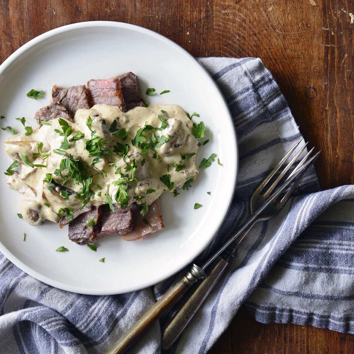 Keto Quick and Easy Mushroom Stroganoff Sauce with Leftover Grilled Steak