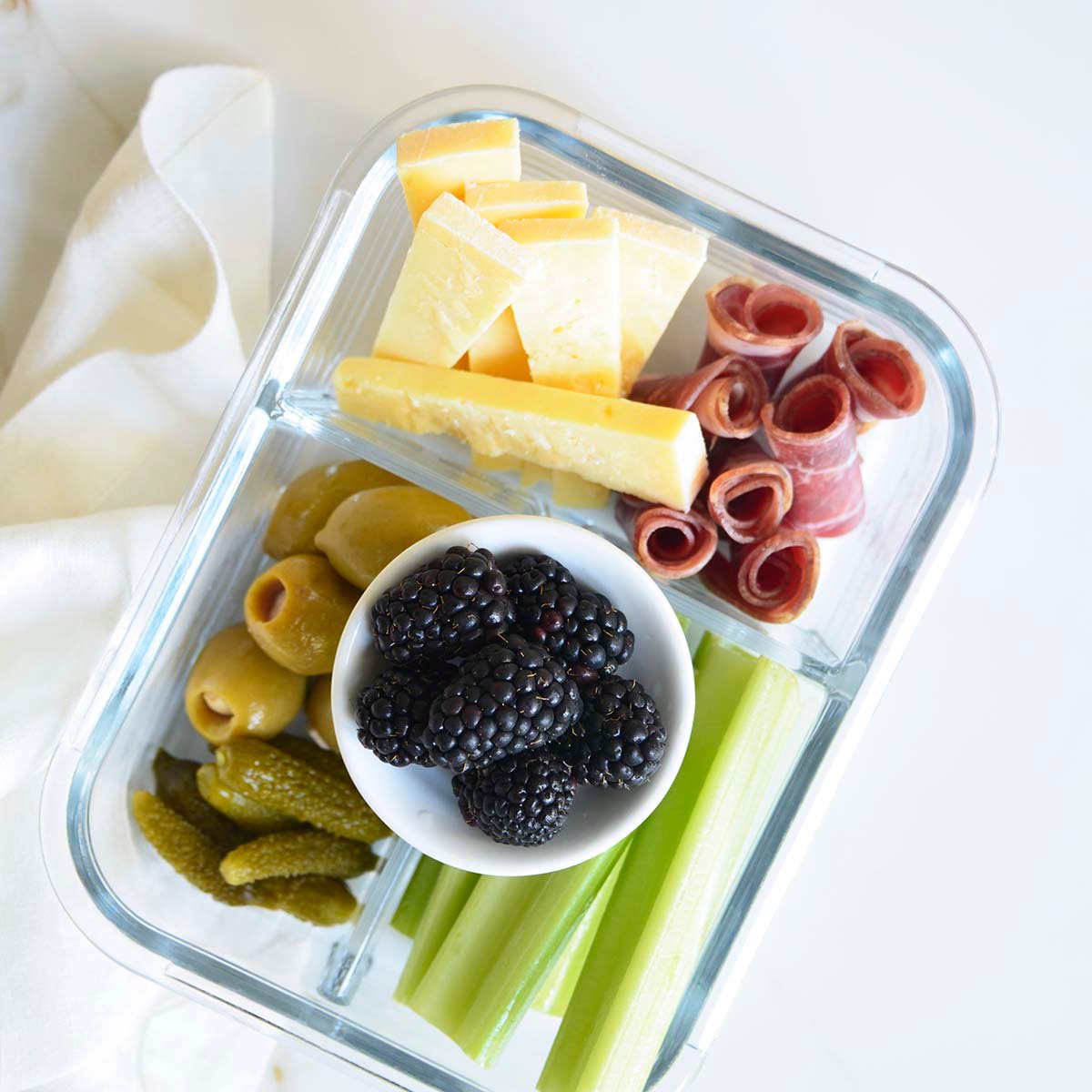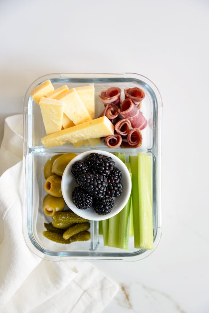 While charcuterie meats and cheese make for a great party appetizer, they also make for a great lunch that can be meal prepped and ready to go for easy healthy eating all week long.